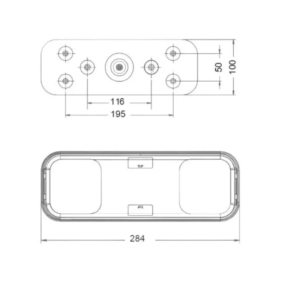 LED baglygte 12/24V med 5 funktioner – baklys, bremselys, blinklys, baglys & refleks, 284x100 mm – trailer & anhænger