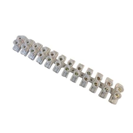 1 x 12 samlemuffer til samling af ledninger og kabler. Kan klippes i ønsket længde og monteres med flad skruetrækker. Max 5A, plastmateriale.