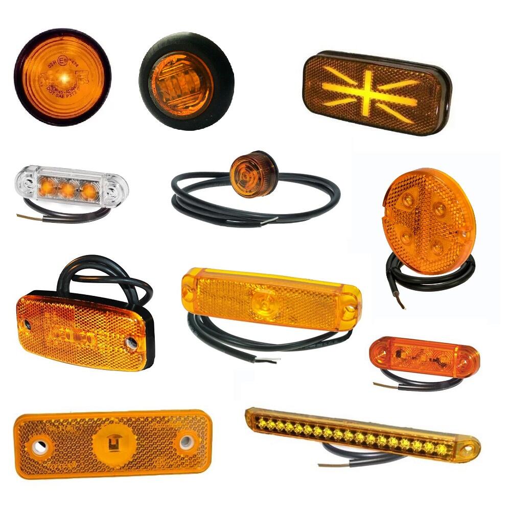 Gule LED sidemarkeringslygter bruges til køretøjer og maskiner. Godkendte markeringslys til lastbil, trailer, campingvogn og autocamper. ADR og E-godkendte sidemarkering i høj kvalitet fra Proplast og 247 Lighting.