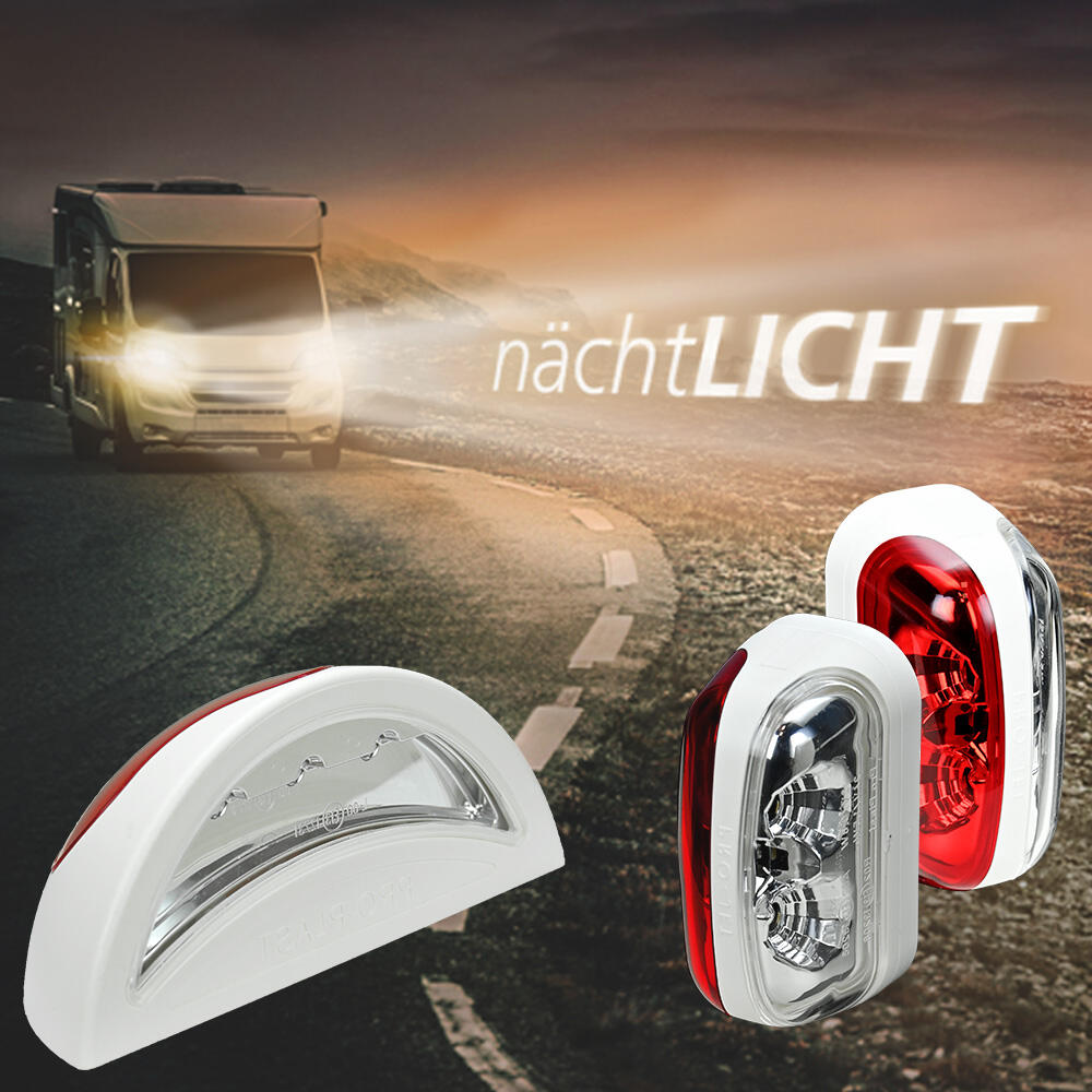 Moderne hvide nummerpladelygter til autocamper, campingvogn, lastbiler og trailer.