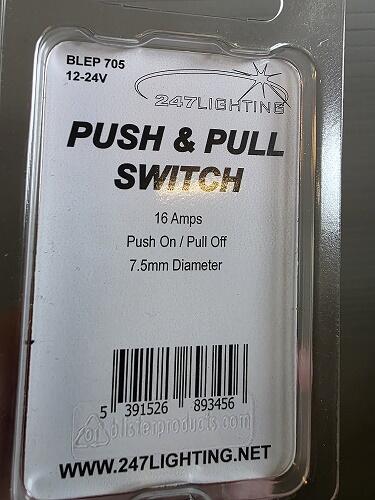 Træk/tryk kontakt 12-24V, 16 Amp - On/Off.